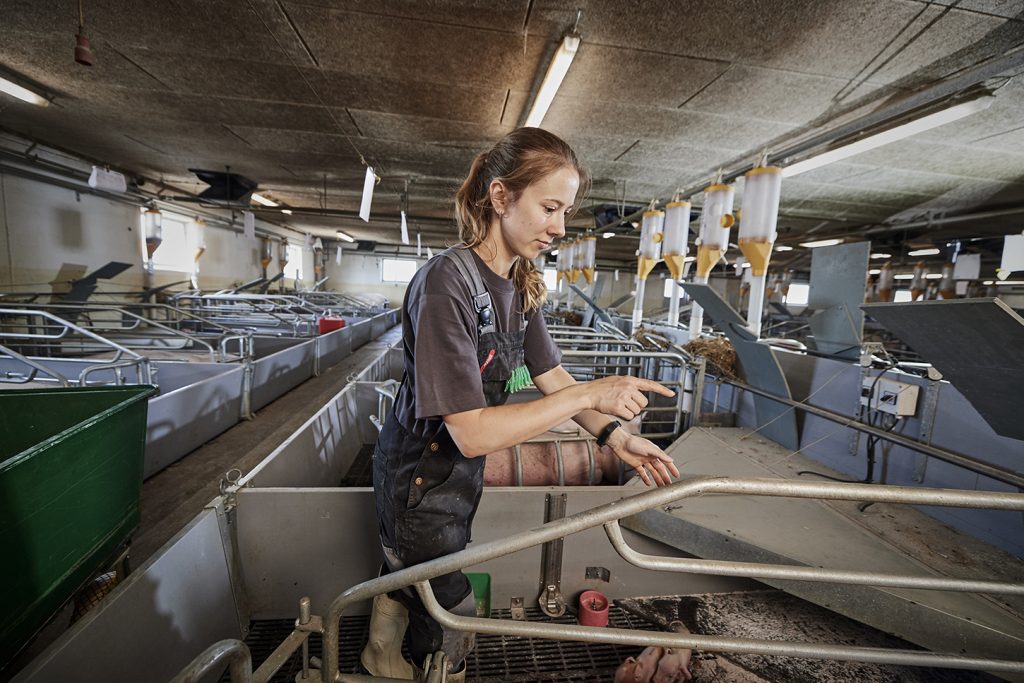 - Achten Sie auf freien Zugang zwischen Sau und Arm, wenn Sie Abferkelhilfe leisten. Stecken Sie den Arm nicht durch die Stalleinrichtung. Dies hilft der Sau nicht und erhöht das Verletzungsrisiko.