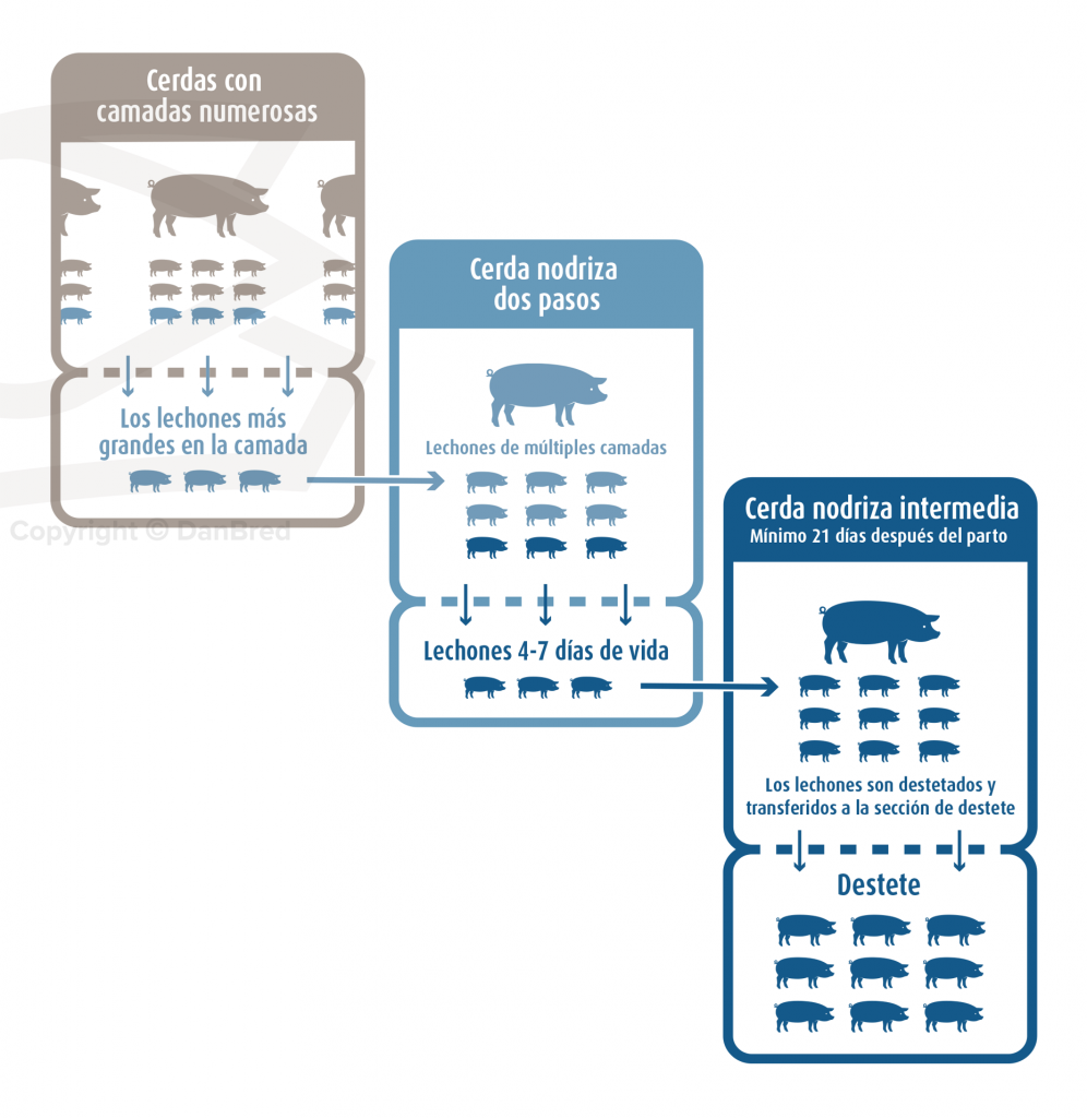 - Puede colocar los lechones pequeños con la cerda nodriza que haya parido más recientemente (cerda n.º 2)