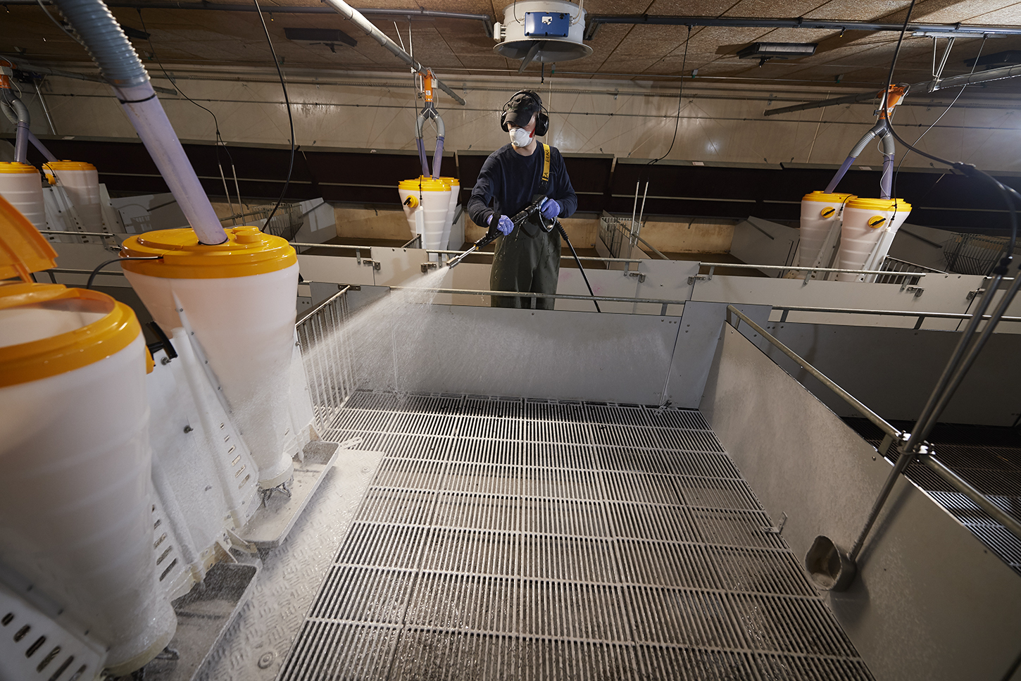 - Waterleidingen, drinkkommen en nippels schoongemaakt en gedesinfecteerd.