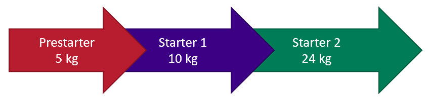 Een succesvolle voerstrategie voor biggen van 1-30 kg kan worden verdeeld in drie tot vier voerfasen, afhankelijk van het gewenste speengewicht. Biggen die onder 5,5 kg worden gespeend, zijn te klein voor een standaard pre-starterdieet en hebben daarom een speciaal pre-starterdieet nodig met extra melkproducten.