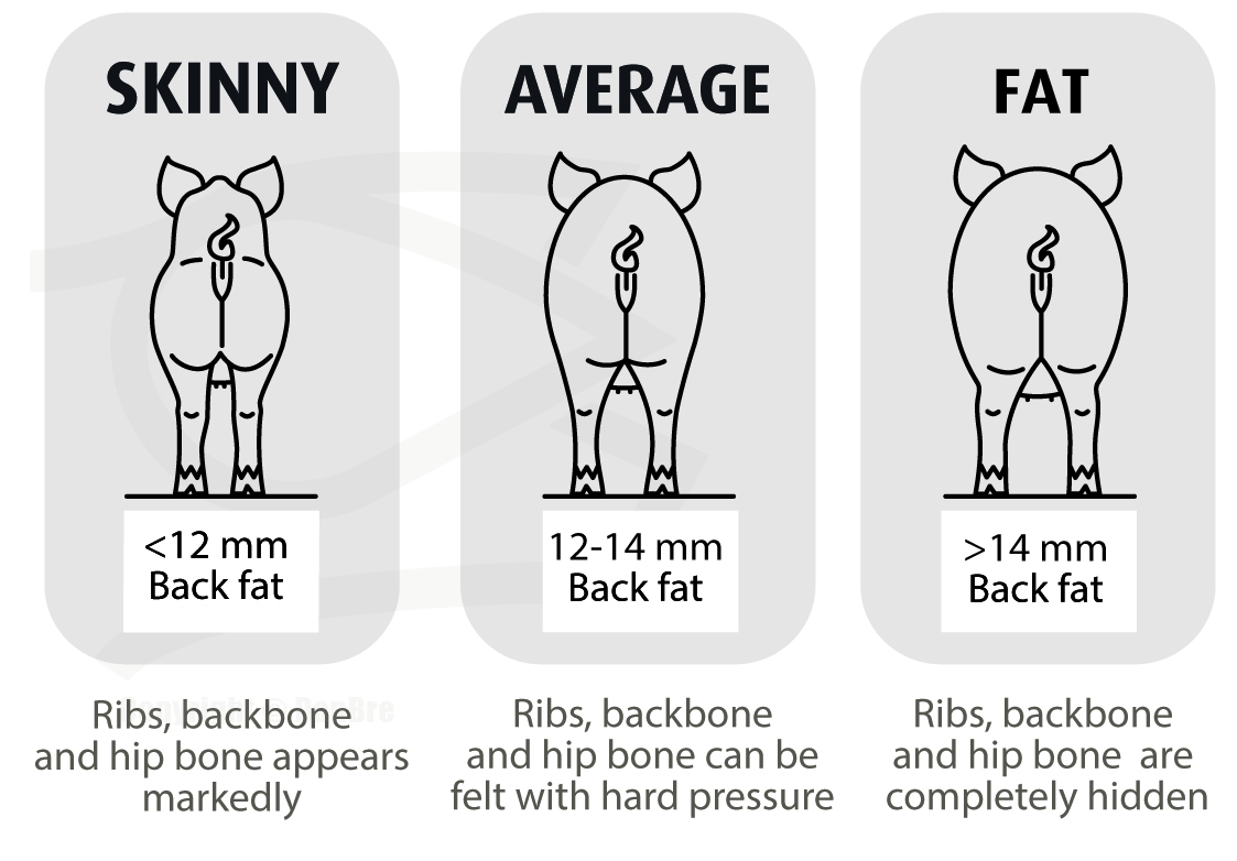 Op het moment van het dekken is een gemiddelde lichaamsconditie met een rugspekdikte van 12-14 mm ideaal.