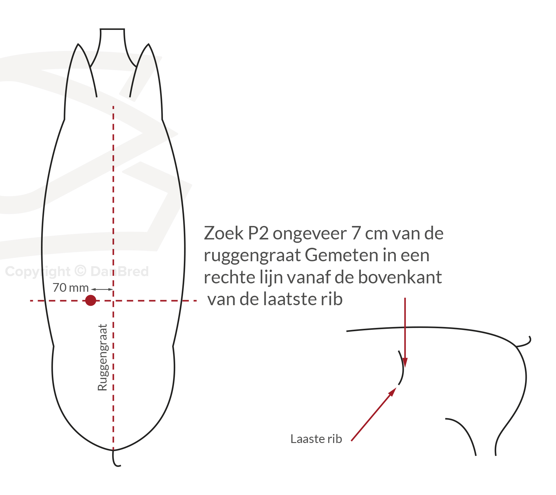 * Doel voor het rugspekbij dekken indien gemeten op punt P2.
