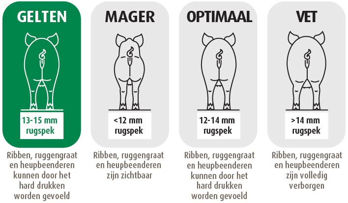 Omdat het aandeel lichaamsvet een rol kan spelen bij het begin van de puberteitsperiode en bronst, is het belangrijk om te streven naar een rugspek van niet minder dan 13 mm – optimaal is 13-15 mm.