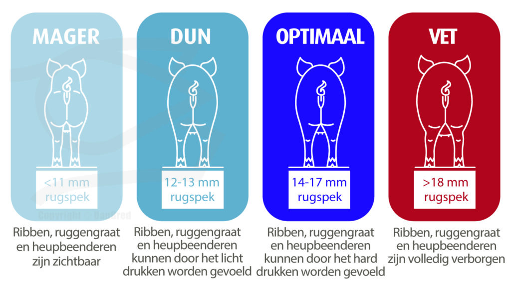 - Het tijdens het spenen behouden van 12 – 14 mm rugspek van de zeugen.
