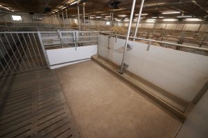 Opdelingen her tilgodeser øget pladskrav og færre dyr i stierne – desuden er det her optimalt at hænge stitavler op så der altid er styr på hvilke dyr der befinder sig i stierne.