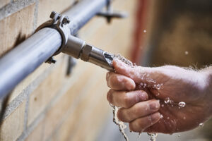 Vandventilerne og drikkekopper i stierne skal tjekkes regelmæssigt, både om der overhovedet er vand, men også hvor meget flow der er – dagligt tjek kan indebære simpelt tryk på ventilerne.