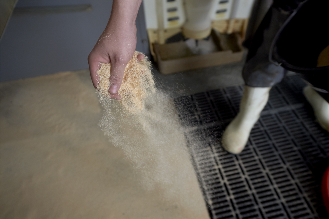 • Strøet dagligt, med enten halm, spåner eller lignende.