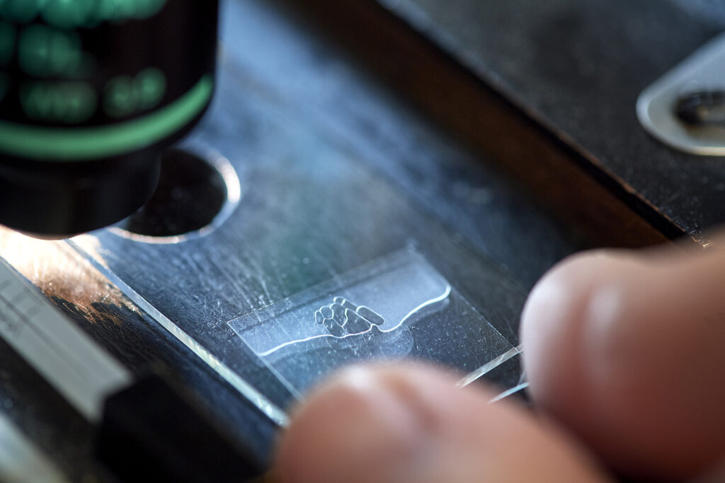 - Carefully lower a cover slip onto the slide and place the sample under the microscope on a heated surface.