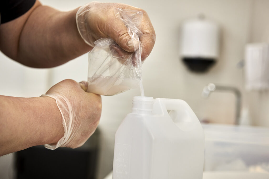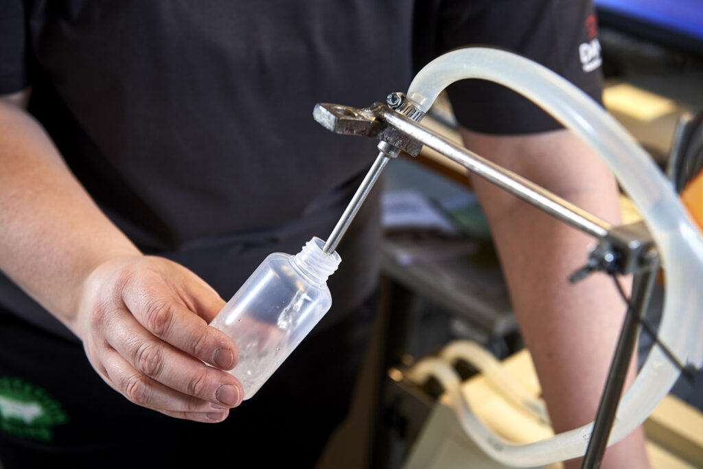 5. Fill bottles/bags with the semen solution to be used for the insemination. This can be done manually or by machine.