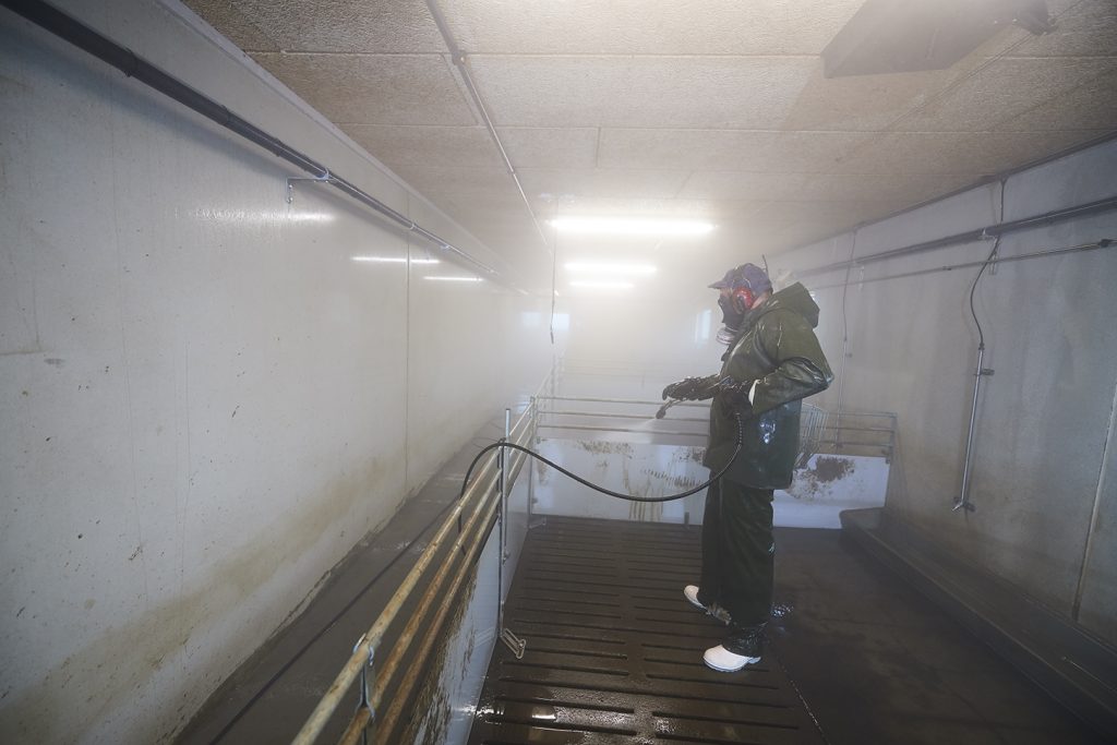 - High-pressure wash all surfaces with clean water, making sure everything is visibly clean