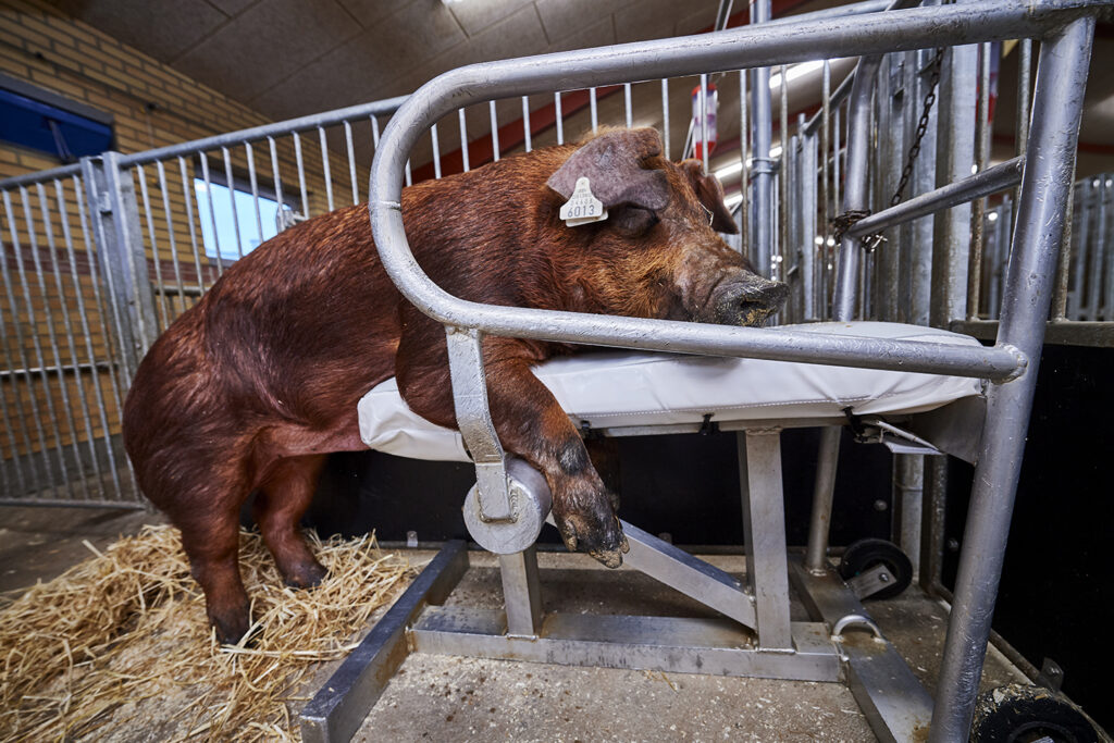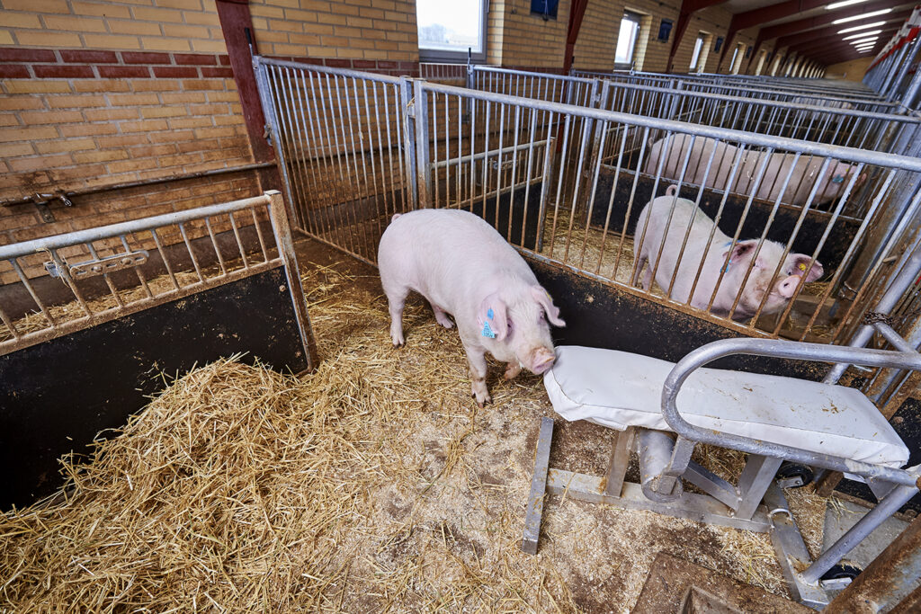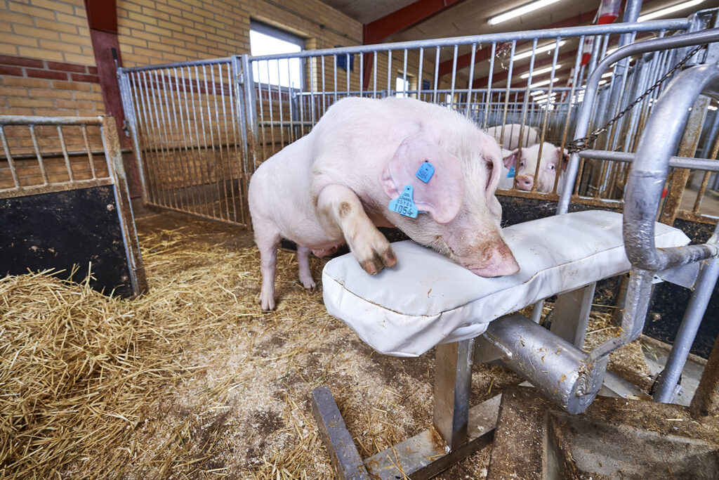 The young boars need to be trained in mounting the dummy for semen collection. Before training, all boars will have been placed in separate pens for a minimum of 14 days.
